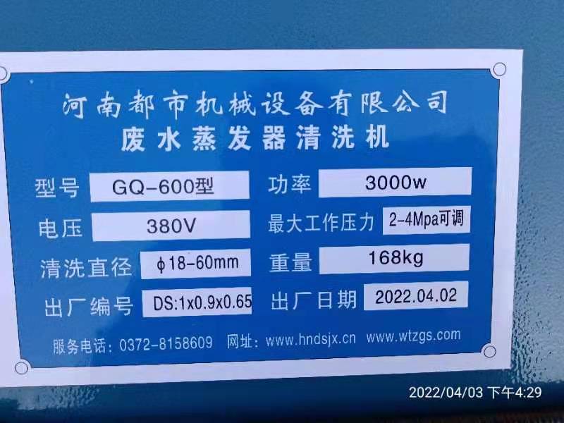 2022年4月1日,衡水酷祥生物科技有限公司糠醛廠(原河北省衡水誠碩化工有限公司),在王總的精心安排下,韓總,張主任,全廠職工共同努力配合河南都市機(jī)械設(shè)備有限公司喬主任,發(fā)明了一項新的工具,使用兩臺GQ—600型智能清洗機(jī)鉆洗管子內(nèi)徑40毫米長度5米1800根結(jié)垢堅硬,徹底堵死,好久沒有通透過的1000平方廢水蒸發(fā)器,為糠醛行業(yè)開辟了新的道路。歡迎大家關(guān)注分享指導(dǎo)合作共贏!