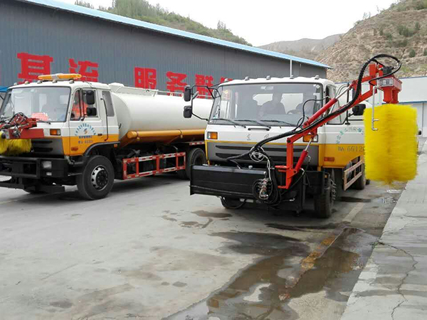 4、調(diào)整升降缸,伸縮臂缸,然后使刷滾擺動更左端,使清洗位置恰當(dāng),開始進(jìn)行工作。